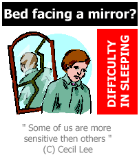 6.5 Imagine, from young, if your room has a TV set. And in your own privacy of your room, you truly enjoy the entertainment. But do we have to listen to a geomancer or a family member who had consulted a geomancer that a TV set is a no no? What would be our life like afterwards? If the argument is that the screen of a TV set is like a mirror. But think again, many of the screens are tinted and some of the latest screens are plasma or LCD screens with little reflection. As a *joke*, some say that when we sleep, our spirit may be shocked to see itself in the mirror. But it could be the reverse! The spirit may like to look at itself before living the body!